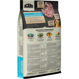 ACANA Puppy Small Breed jest również wzbogacona o owoce, warzywa i zioła, takie jak jabłka, marchewki, dynia, koper włoski i rumianek, które dostarczają niezbędnych witamin, minerałów i antyoksydantów, które wspierają zdrowie układu immunologicznego, przewodu pokarmowego i skóry szczeniąt. Karma ta jest wolna od sztucznych barwników, konserwantów i składników zbożowych, co sprawia, że jest idealna dla szczeniąt z wrażliwością na składniki pokarmowe. ACANA Puppy Small Breed to wybór idealny dla właścicieli szczeniąt małych ras osiągających wagę do 9 kg w wieku dorosłym, którzy szukają zdrowej i zbilansowanej karmy, która zapewni optymalny wzrost i rozwój ich pupila.