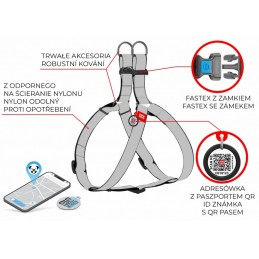 Szelki wykonane z wytrzymałego nylonu to idealne rozwiązanie dla psów wszystkich ras, łączące styl i wygodę. Wzór NASA21 nadaje im unikalnego charakteru, a solidne okucia oraz plastikowe zapięcie fastex zapewniają bezpieczeństwo i łatwość użytkowania. Szelki posiadają inteligentną adresówkę z paszportem QR, umożliwiającą szybkie zidentyfikowanie pupila w razie potrzeby. To komfortowy i nowoczesny produkt, który dba o bezpieczeństwo Twojego psa podczas spacerów.
