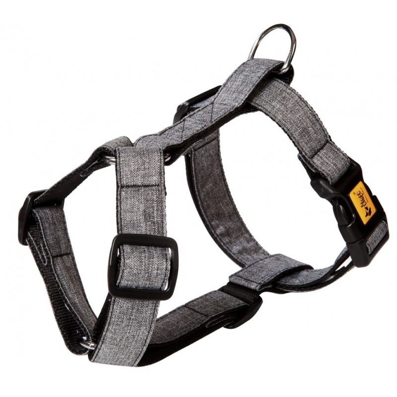 DINGO Szelki Scandi – szare wykonane zostały z wysokiej jakości taśmy polipropylenowej oraz materiału poliestrowego, które są odporne na ścieranie i działanie wilgoci. Dzięki wodoodpornej konstrukcji oraz solidnym okuciom szelki doskonale sprawdzają się zarówno podczas codziennych spacerów, jak i aktywności w trudniejszych warunkach pogodowych.