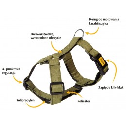 - Regulacja w trzech miejscach – dopasowanie do szyi, klatki piersiowej i paska podbrzusznego