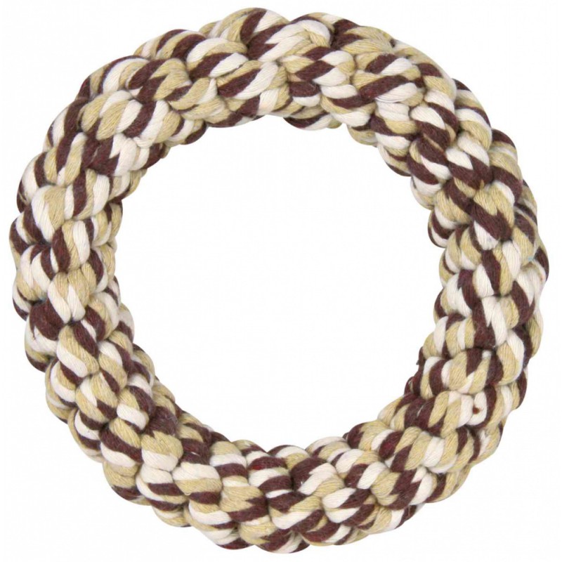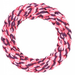 TRIXIE Obręcz ze sznurka Denta Fun o średnicy 14 cm jest uniwersalną zabawką przeznaczoną dla psów wszelkich wieków, stworzoną, aby dostarczyć rozrywki i stymulacji. Wykonana z trwałej mieszanki bawełny i poliestru, solidnie spleciona obręcz zawiera w sobie piłkę tenisową, co zwiększa jej atrakcyjność i otwiera nowe możliwości zabaw dla Twojego psa.