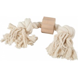 Naturalna, sznurowana, z węzłami i drewnianym krążkiem zabawka to świetny wybór dla Twojego psiaka. Bawełniano-lniany sznur z drewnianym pierścieniem świetnie sprawdzi się przy zabawie w przeciągnie. Przy okazji produkt ten sprzyja utrzymaniu odpowiedniej higieny jamy ustnej.