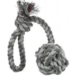 Charakteryzuje się bardzo mocnym zapleceniem w formie piłki z praktycznym uchwytem, który ułatwia trzymanie i kontrolę podczas gry. Piłka jest idealna do szarpania, gryzienia, przeciągania i aportowania, oferując psom nie tylko doskonałą formę aktywnej zabawy. Regularne żucie i gryzienie sznurka może pomóc w czyszczeniu zębów psa i masażu dziąseł, co przyczynia się do utrzymania zdrowia jamy ustnej.