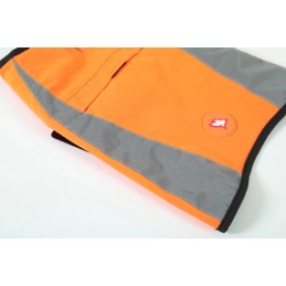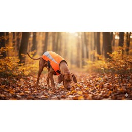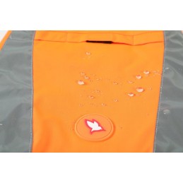 - Wysoka widoczność i bezpieczeństwo – jaskrawy pomarańczowy kolor oraz elementy odblaskowe skutecznie poprawiają widoczność psa po zmroku i w trudnych warunkach pogodowych