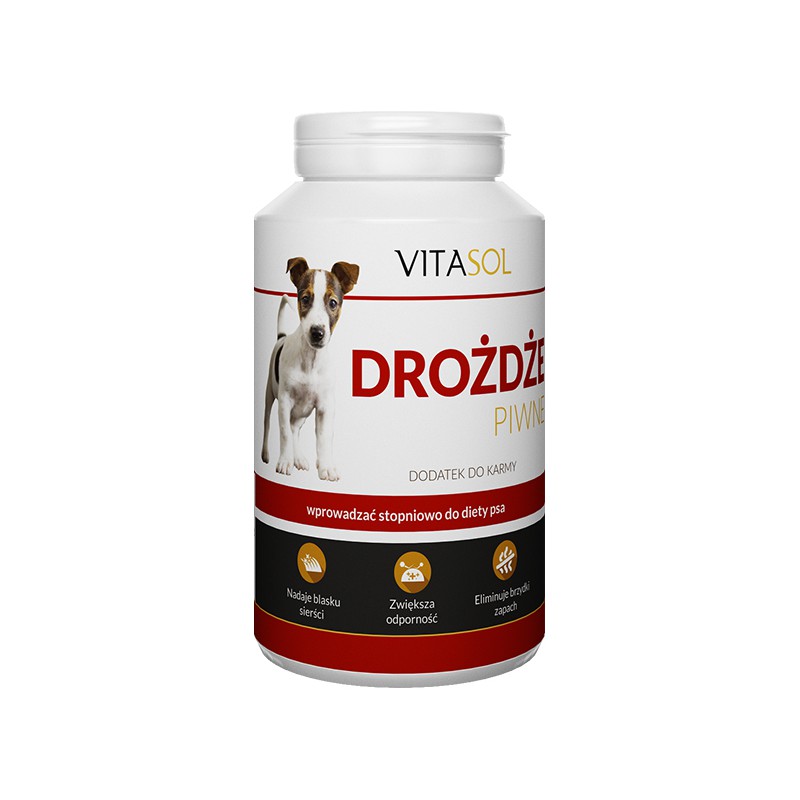Naturalny produkt z pełnowartościowych, nieekstrahowanych drożdży piwnych. Systematyczne stosowanie drożdży poprawia wygląd sierści i skóry psa. Zawarta w nich biotyna oraz cynk nadaje blasku matowej sierści, odżywia okrywę włosową psa i ułatwia jej rozczesywanie. Drożdże regulują procesy trawienne, przyspieszają metabolizm, eliminują brzydki zapach z pyska i sierści psa. Zwiększają odporność i są naturalnymi probiotykami. Bogate w witaminy dla psa pomagają w leczeniu alergii i chorób skóry. Nie zawierają konserwantów, antyzbrylaczy, barwników i innych dodatków. Przeznaczone dla psów w każdym wieku. Produkt naturalny bez konserwantów przeznaczony dla psów w każdym wieku. Przechowywać w suchym, chłodnym i ciemnym miejscu.