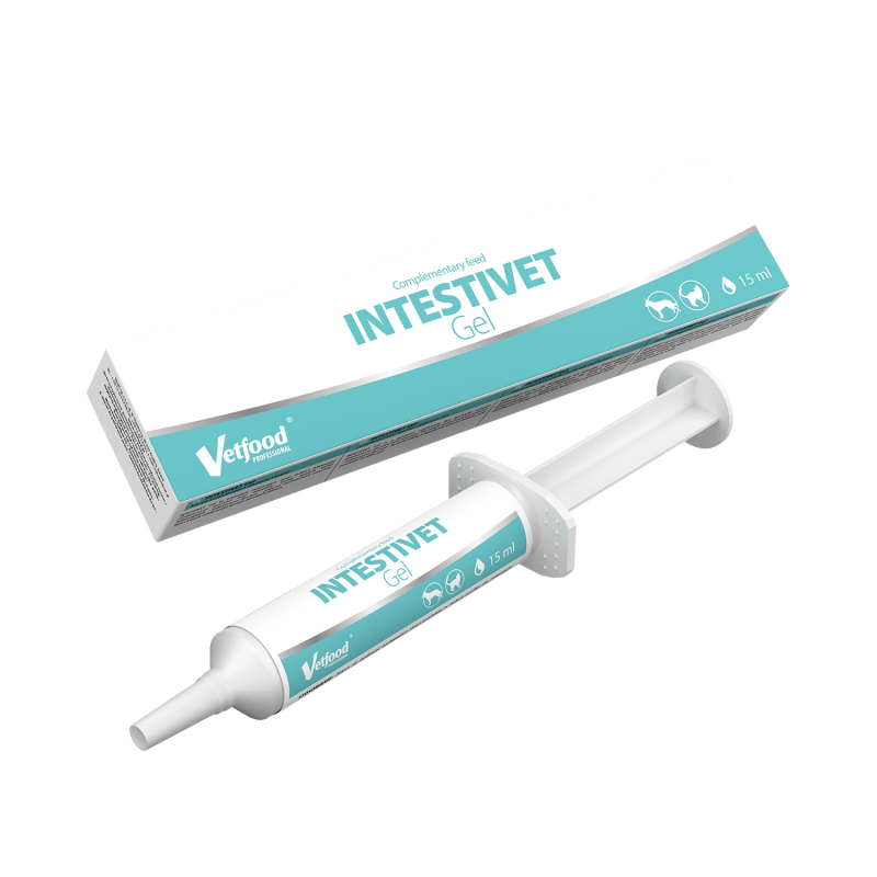 VETFOOD Intestivet Gel to praktyczne wsparcie dietetyczne pomagające utrzymać równowagę mikroflory jelitowej, komfort trawienny i dobre samopoczucie zwierzęcia.