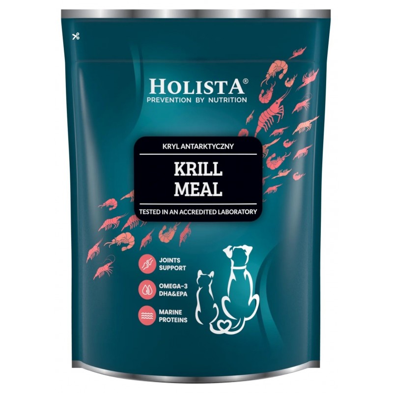 Naturalny składnik diety stanowi cenne źródło kwasów tłuszczowych Omega-3 (EPA i DHA), wysokiej jakości białek morskich oraz silnych antyoksydantów, które wspomagają ogólne zdrowie i witalność psów oraz kotów. Zawarta w nim astaksantyna wykazuje silne działanie przeciwutleniające – chroni komórki przed stresem oksydacyjnym, spowalnia procesy starzenia i wspiera funkcje odpornościowe organizmu.