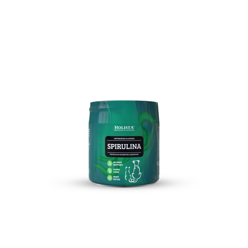 Spirulina to naturalny superfood, który stanowi niezwykle cenne źródło łatwo przyswajalnego białka, witamin, minerałów i niezbędnych kwasów tłuszczowych, wspierając organizm psa lub kota na wielu poziomach. Pomaga wzmocnić układ odpornościowy, poprawia wygląd skóry i sierści, wspomaga procesy detoksykacyjne oraz chroni komórki przed stresem oksydacyjnym, który przyspiesza starzenie i zwiększa ryzyko chorób cywilizacyjnych, takich jak nowotwory czy schorzenia serca.
