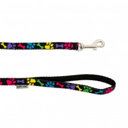 Smycz dla psa BARRY KING z motywem kolorowych łapek to połączenie radosnego designu, solidnego wykonania i codziennej funkcjonalności. Czarna taśma ozdobiona wielobarwnymi odciskami łap oraz kolorowymi kośćmi przyciąga wzrok i nadaje spacerom z pupilem wyjątkowego, pozytywnego charakteru. To idealny wybór dla opiekunów, którzy chcą połączyć praktyczność z oryginalnym stylem.