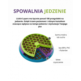 Łatwość w utrzymaniu czystości tej zabawki gwarantuje komfort użytkowania i zachowanie higieny. Gra Lickin' Layers, bezpieczna dla Twojego czworonoga, jest wolna od BPA, PCV i ftalanów, dzięki czemu wszystkie użyte materiały są bezpieczne dla żywności.
