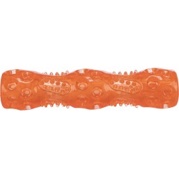 TRIXIE Kij z Dźwiękiem, wykonany z gumy termoplastycznej (TPR) o długości 18 cm, który stanowi znakomitą zabawkę dla Twojego psa. Innowacyjna zabawka nie tylko wydaje dźwięki, przyciągając uwagę i zainteresowanie psa. Także jest zaprojektowana tak, aby wspierać higienę jamy ustnej poprzez masowanie dziąseł i pomoc w czyszczeniu zębów podczas zabawy.