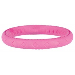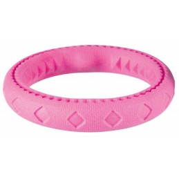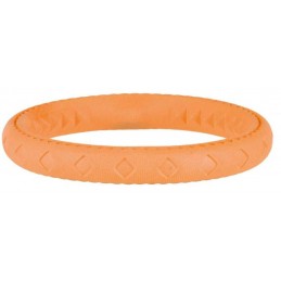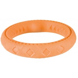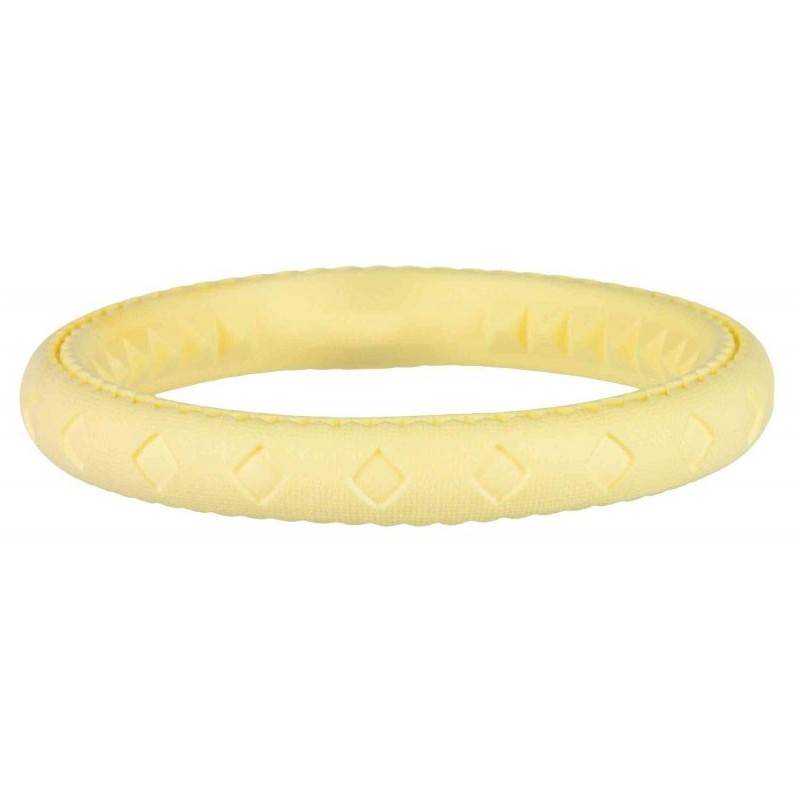 Obręcz z gumy termoplastycznej to doskonała zabawka dla Twojego psa, która zapewni mu dużo rozrywki. Wykonana z gumy termoplastycznej, ta obręcz jest stworzona, aby przetrwać intensywną zabawę i gryzienie. Jedną z cech tej obręczy jest jej zdolność do unoszenia się na wodzie. Dzięki temu Twój pupil może cieszyć się zabawą w rzekach, jeziorach czy basenach, zapewniając swojemu psu dodatkową frajdę podczas zabawy w wodzie. Produkt, dzięki swoim wyrazistym kolorom jest łatwa do zlokalizowania na trawie, plaży czy w wodzie.