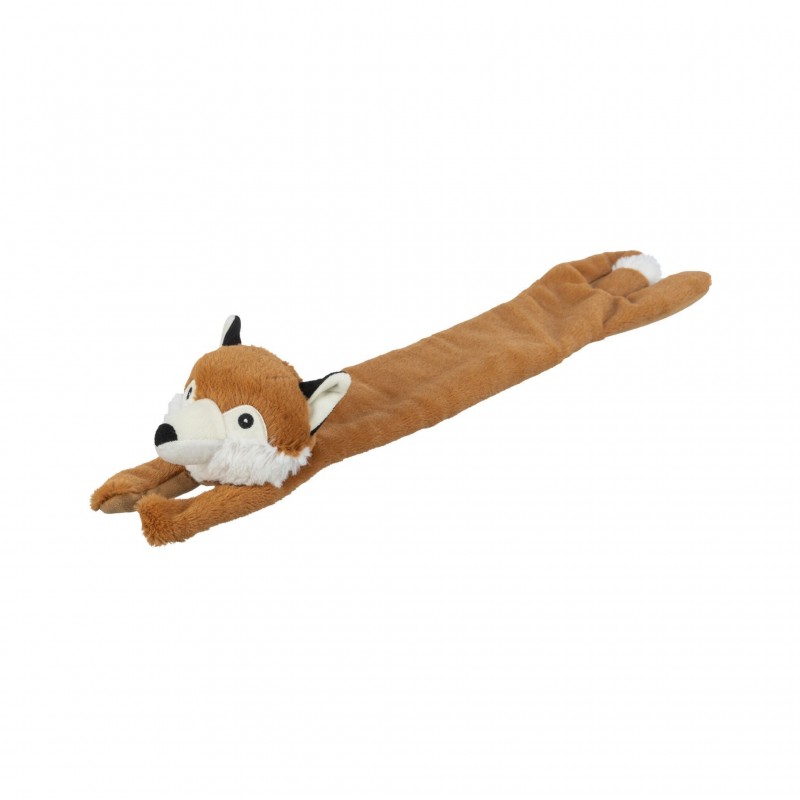 Zabawka została wyposażona w wbudowane elementy dźwiękowe oraz szeleszczącą folię, które skutecznie pobudzają ciekawość psa i zachęcają do aktywności. Miękka forma sprawia, że lis doskonale sprawdzi się nie tylko do zabawy, ale również jako pluszak do noszenia i przytulania. Duży rozmiar (50 cm) czyni go idealnym wyborem dla średnich i większych psów.