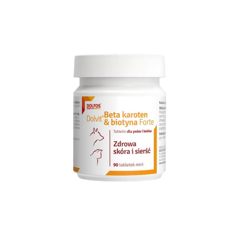DOLFOS Beta karoten & biotyna forte szczególnie zalecany jest dla psów ras długowłosych ras a zwłaszcza dla suk po zakończonym okresie karmienia i odchowaniu szczeniąt.