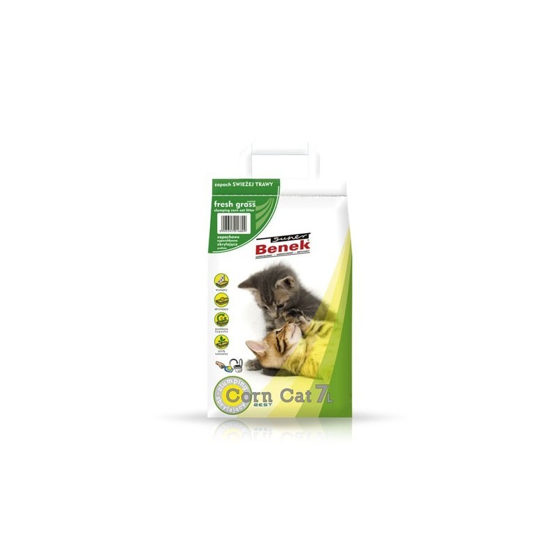 Super Benek CORN to seria żwirków nowej generacji wyprodukowanych z naturalnego surowca roślinnego, bez dodatków chemicznych. Produkt został stworzony w odpowiedzi na potrzeby konsumentów, poszukujących podłoży o jeszcze lepszych właściwościach.