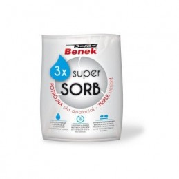 Saszetka SUPER SORB przeznaczona do stosowania wraz ze żwirkiem Super Benek. Produkt wspomaga działanie żwirku poprawiając chłonność cieczy i nieprzyjemnych zapachów oraz zapobiega przywieraniu bryłek do dna kuwety.