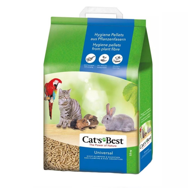 Naturalna ściółka z włókien roślinnych o uniwersalnym zastosowaniu dla niemal wszystkich małych zwierząt domowych – zwłaszcza jeśli w domu jest wiele różnych gatunków zwierząt.